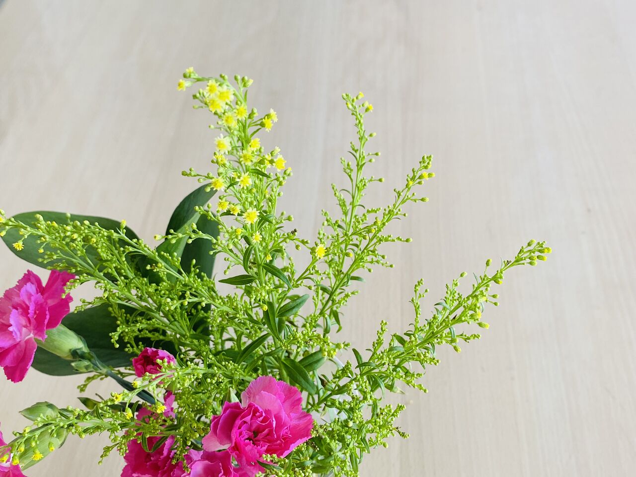 朝、起きるとグラスに生けているワダチソウが