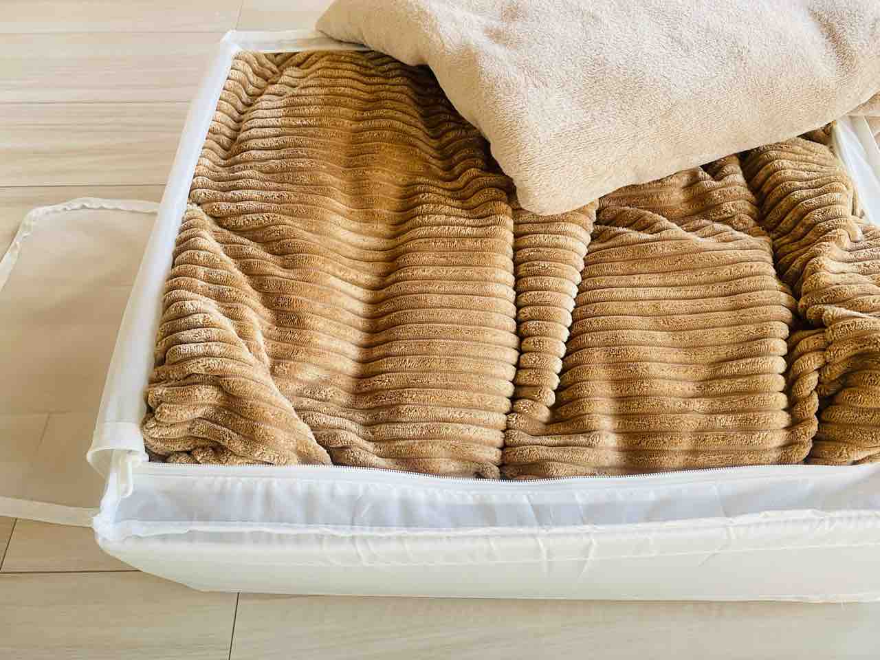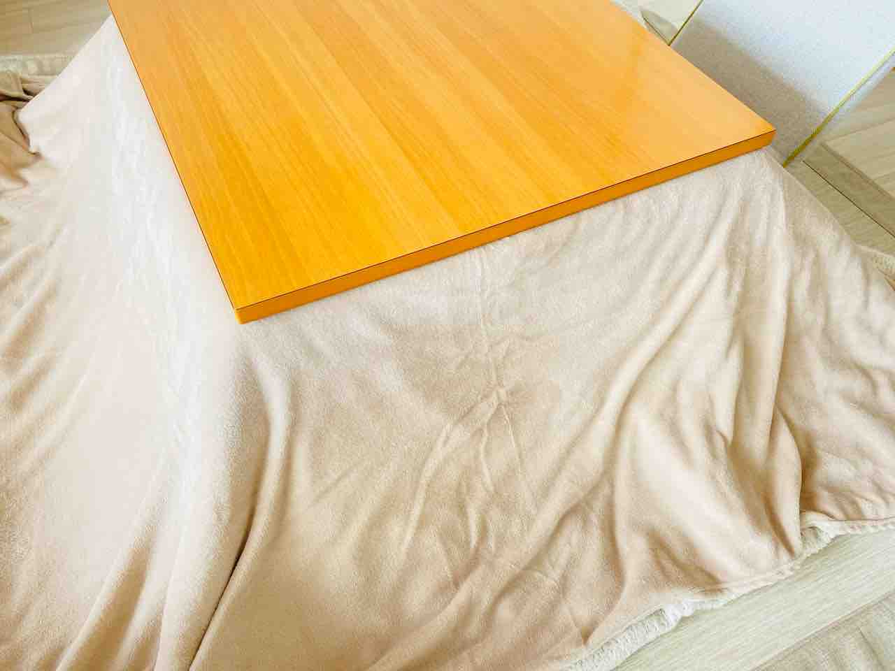 汚れ防止にこたつ布団の上にカバーをかけています。
