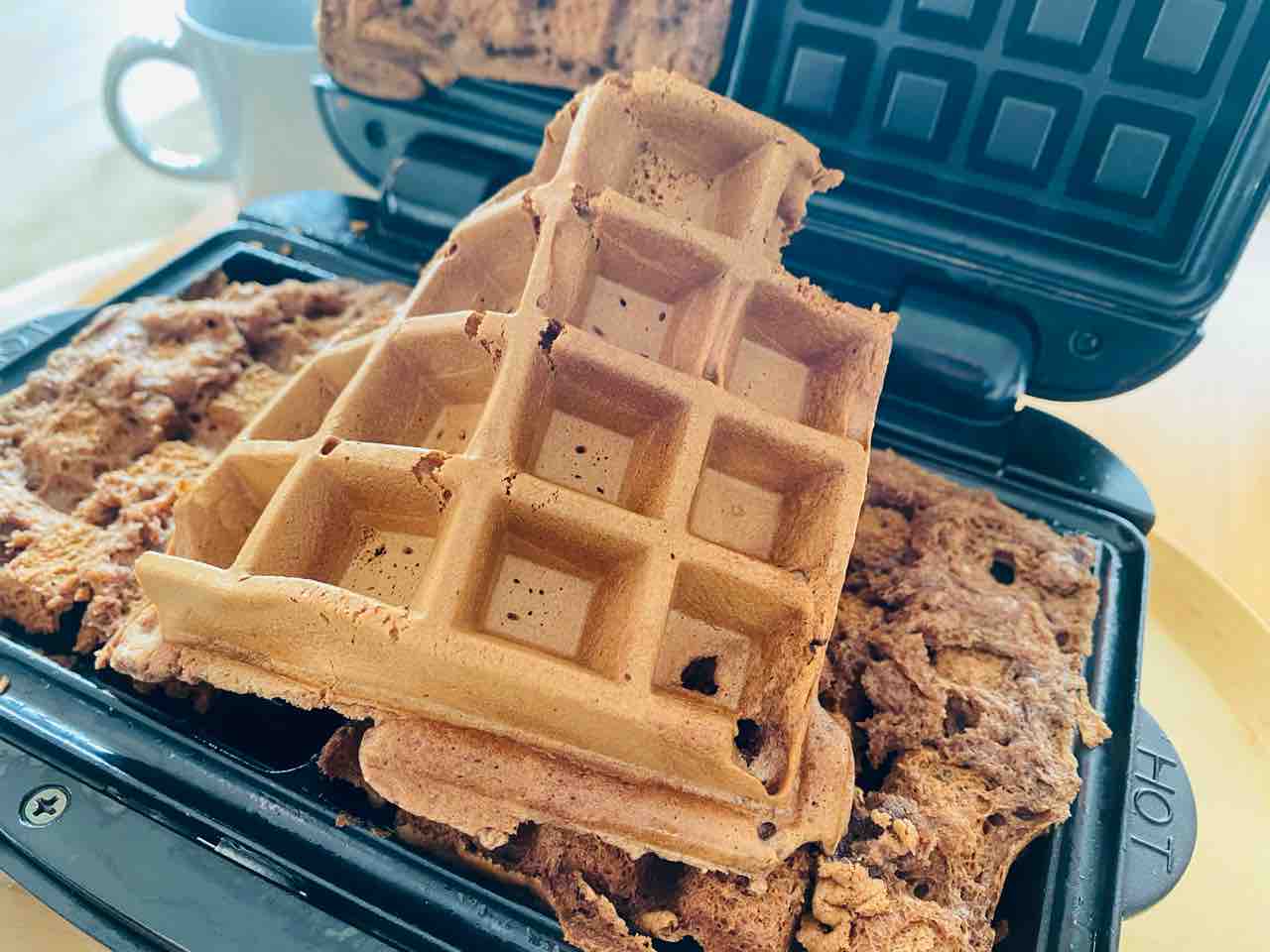 お餅をワッフルメーカーで焼くとさっくり美味しいんですよね