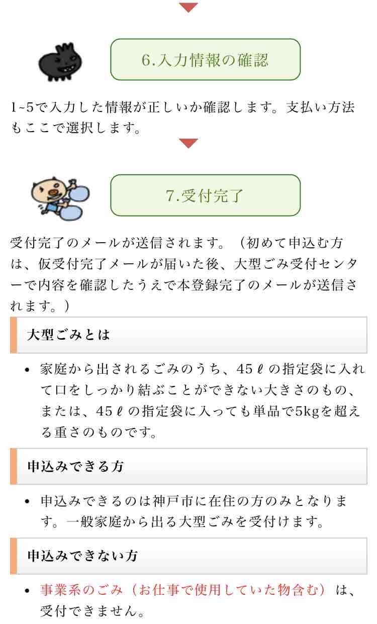 【神戸市大型ごみインターネット受付】を開くと