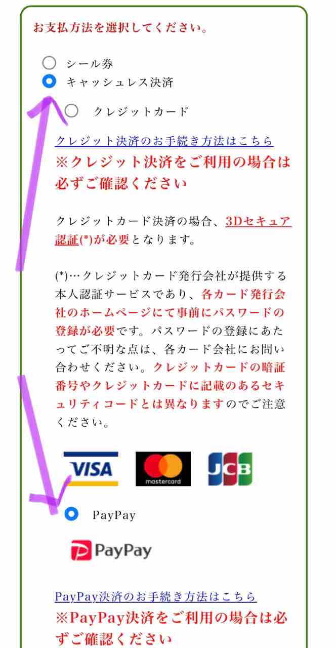 キャッシュレス決済を選択して