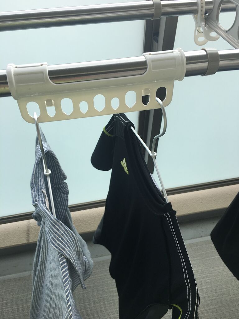 竿に挟めるハンガーかけを購入してみましたよ。
