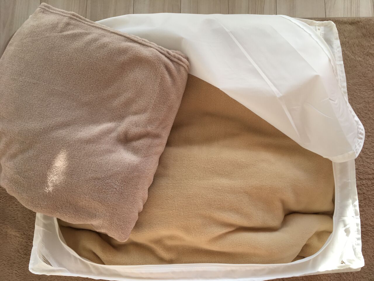 ケースにお布団などを入れて