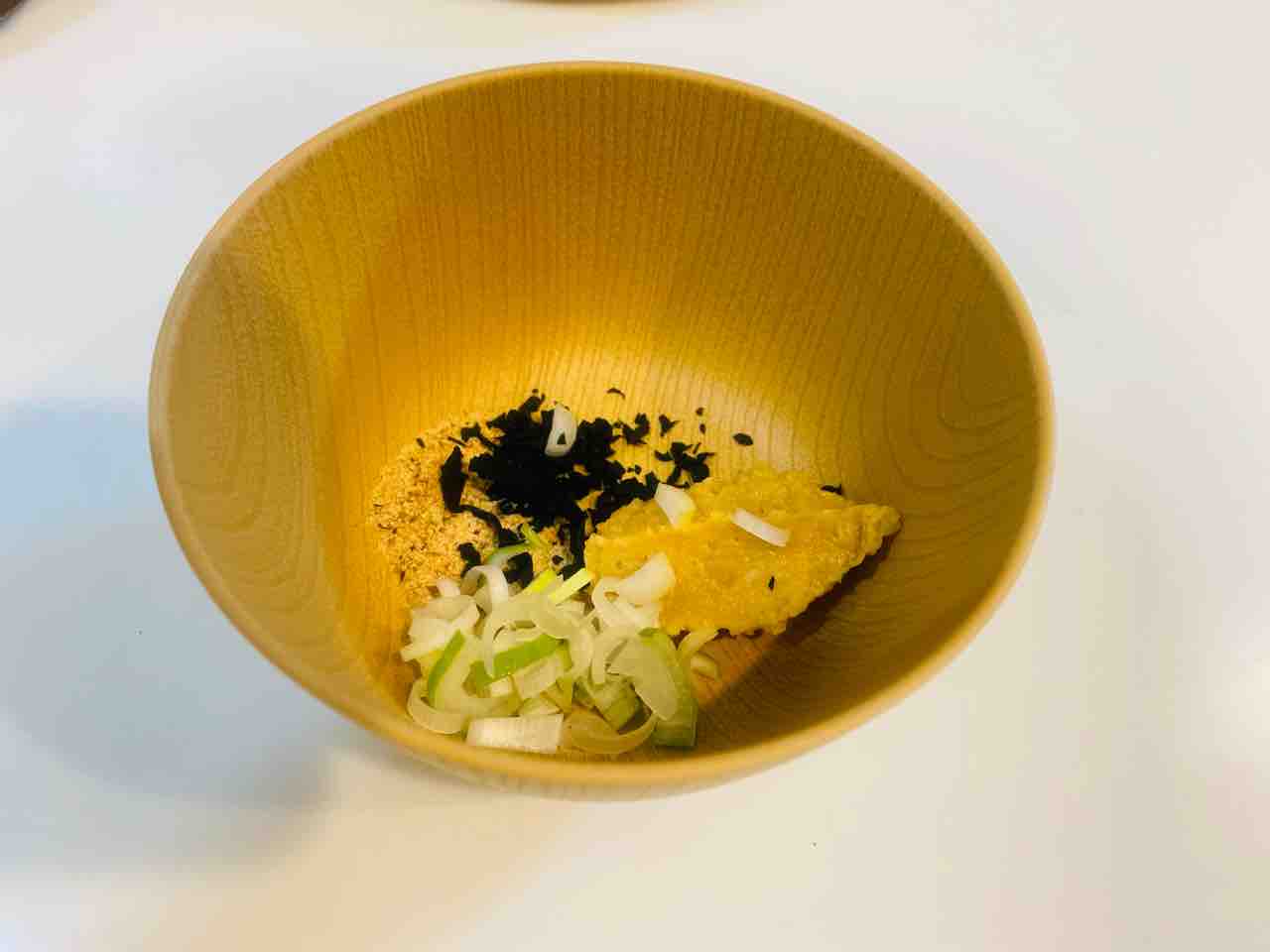 茅乃舎(かやのや)のだしと、お味噌、ネギ、乾燥ワカメ。![]()